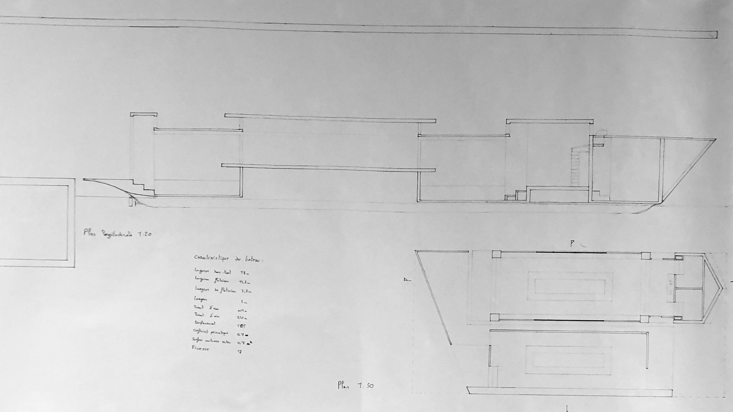 L’espace de conception étant lié au problème d’équilibre et de flottabilité, il faut optimiser chaque espace. Chaque trait dessiné modifie l’équilibre de son bateau, il faut alors repenser l’ensemble du plan. Un quai flottant aménagé soutient un voile miroitant dans l’eau. Une idée empruntée à Norman Foster avec son ombrière à Marseille.